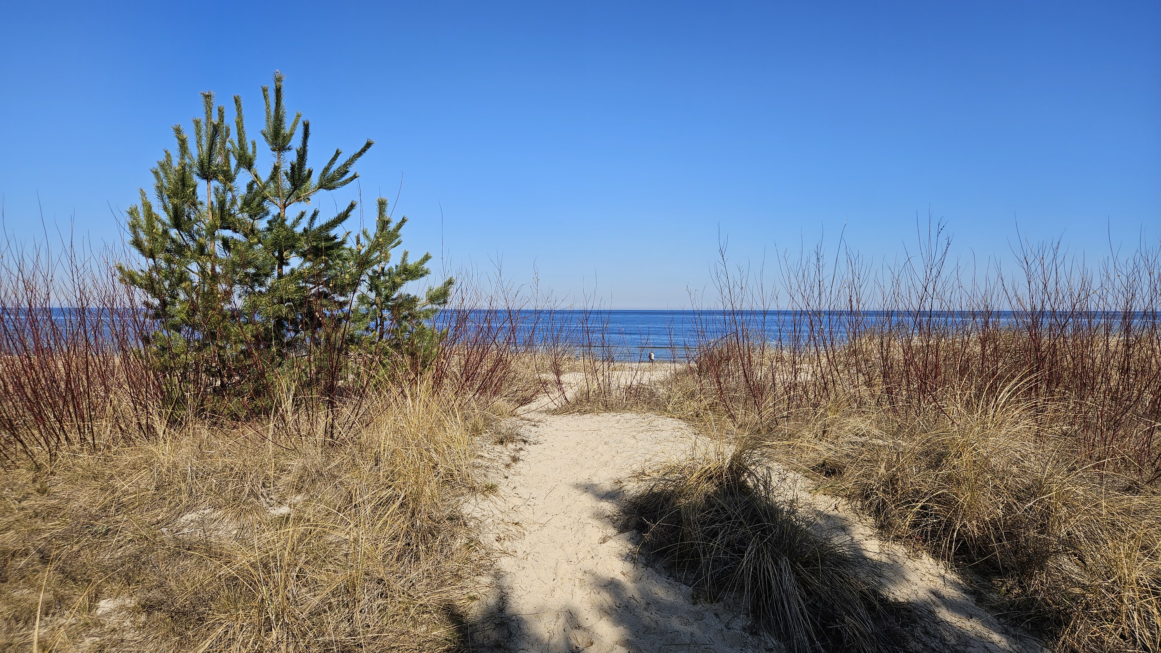 Außerdem gibt es einen Dünenweg, der sogar mit Rollstuhl befahrbar ist - von hier aus hat man einen phantastischen Blick auf die Usedomer Bucht und die Kaiserbäder.