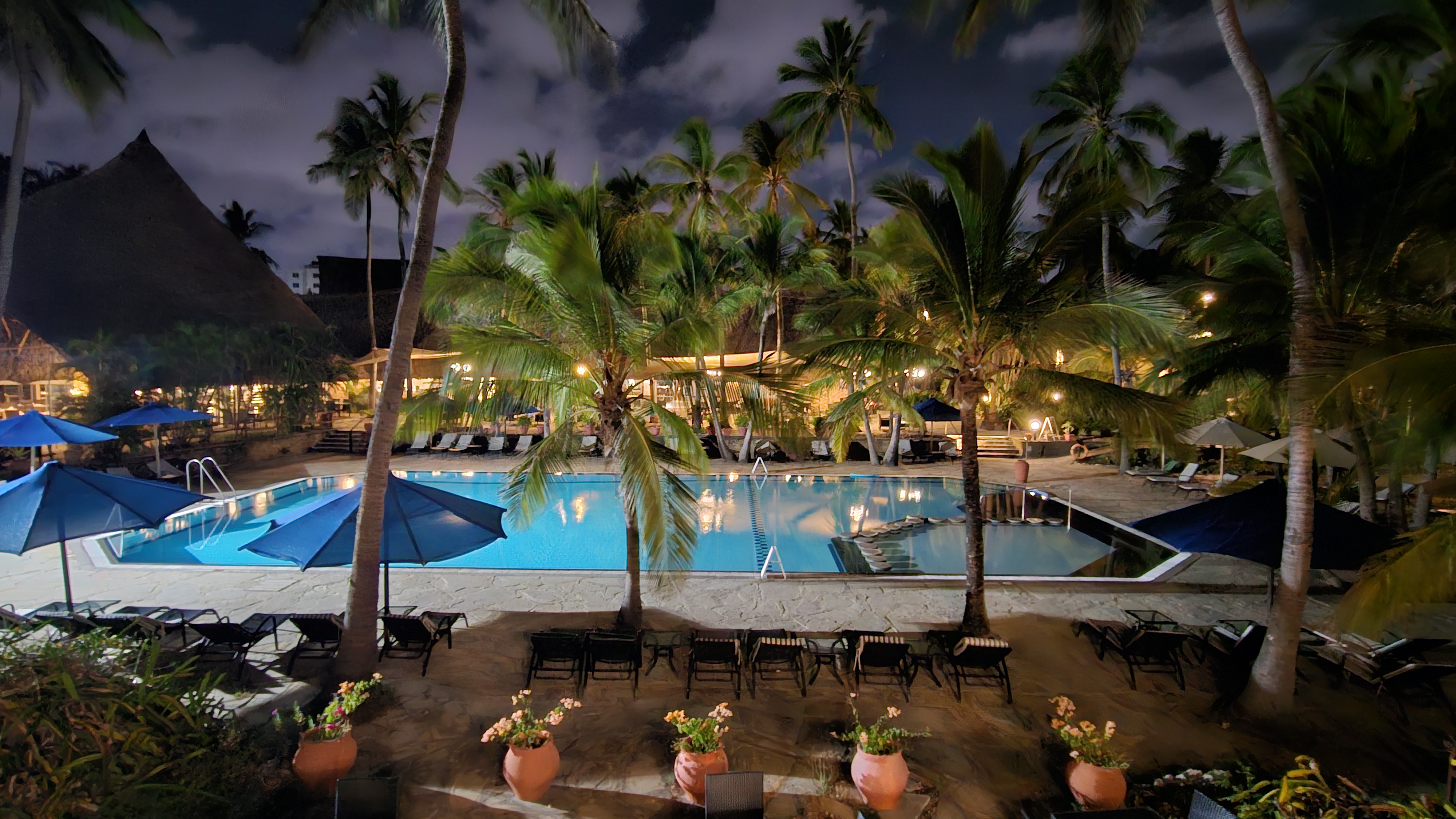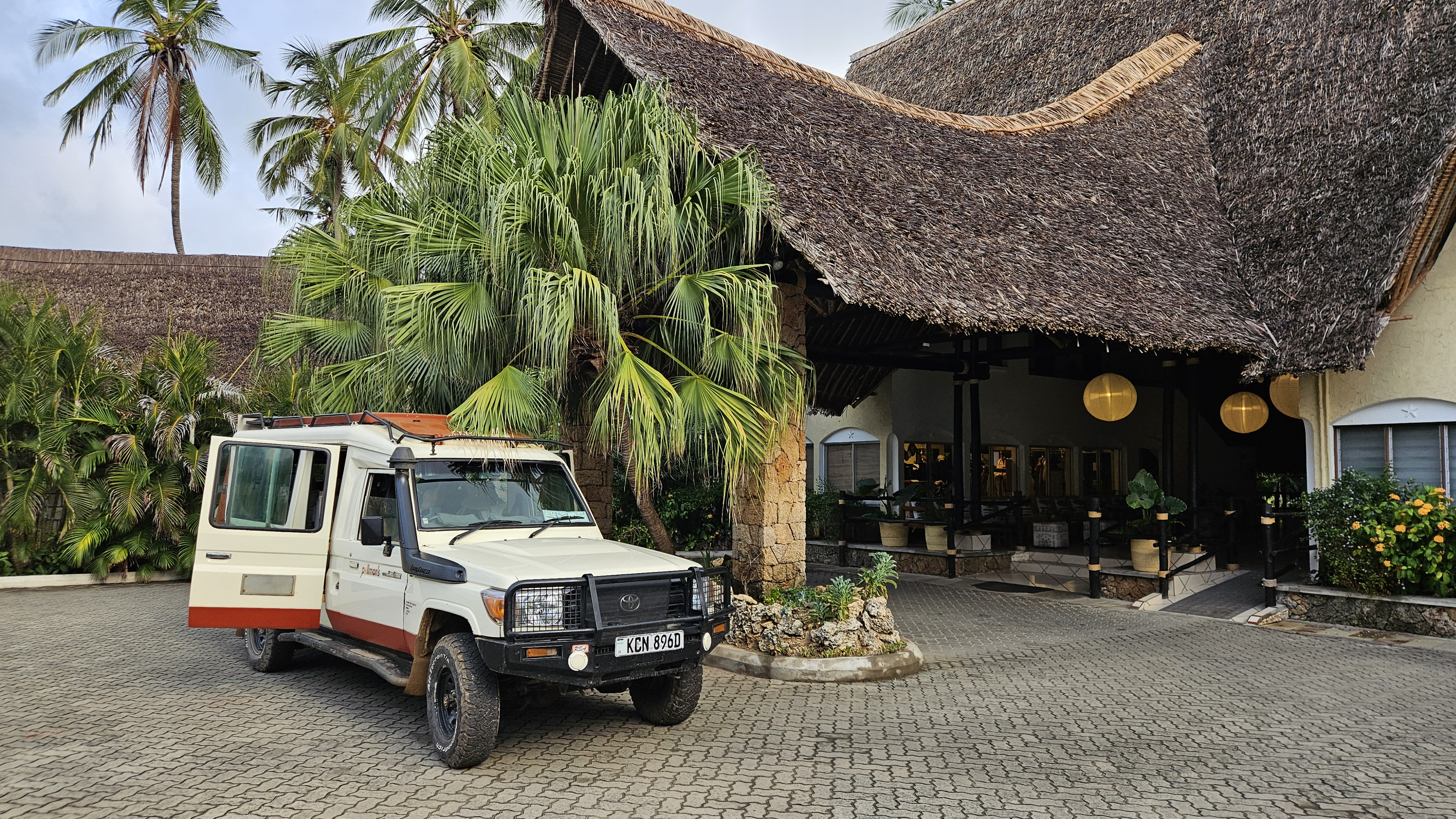Nach einer etwas beschwerlichen Anreise - alles in allem dauert diese von Haustür bis ins Hotelzimmer fast 24 Std. - empfängt uns das ausgesprochen freundliche Personal vom Bahari Beach Hotel. Das Bahari Beach Hotel ist ein bekanntes 4-Sterne-Resort an der Nordküste Kenias, direkt am Nyali Beach in der Nähe von Mombasa gelegen. Es zeichnet sich besonders durch seine Architektur im afrikanischen Swahili-Stil und seine Lage auf einer Korallenfels-Klippe aus, die einen spektakulären Panoramablick auf den Indischen Ozean bietet.